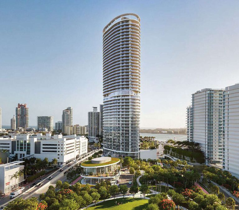 It is the tallest luxury building in Miami Beach, with 48 floors. Its unique elliptical shape designed by Arquitectonica creates 360-degree views. It is surrounded by a large public park. Five Park also includes five-star amenities, such as on-site workspaces, electric vehicle spaces, valet service, storage for bikes and other vehicles, and thoughtfully designed fitness areas. When it comes to relaxation and entertainment, there are plenty of options including pools and social lounges. Each residence offers abundant space, smart technology, high-speed WiFi, stylish kitchens with ultra-modern appliances, and beautiful views. The building’s convenient location is close to great restaurants, cultural venues, Five Park’s amazing Canopy Club, and much more.