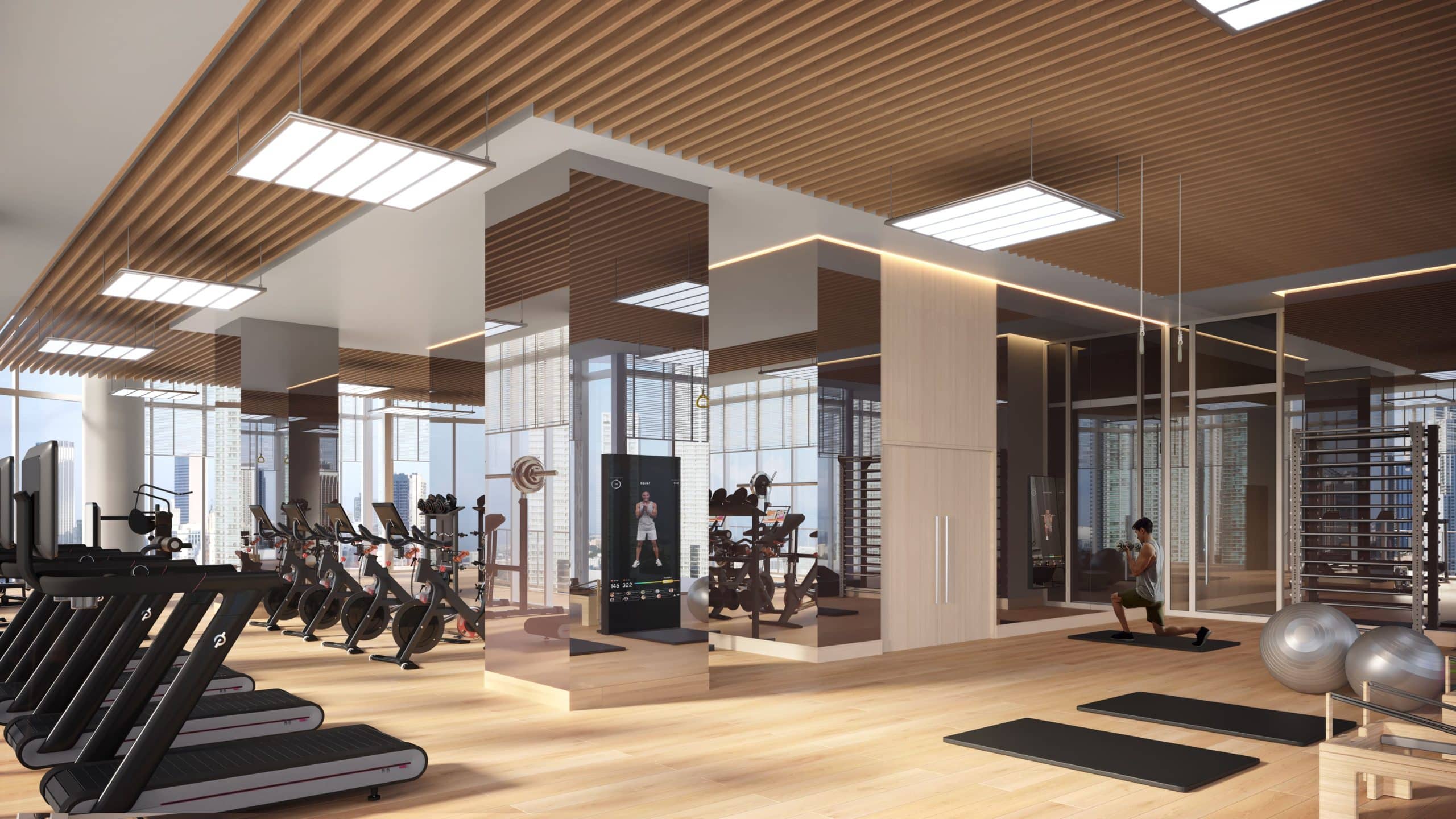 bikes, yoga studio, and interactive fitness